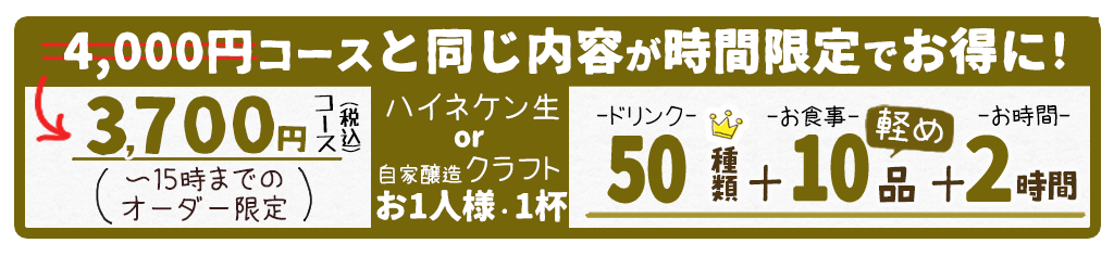 土日祝・お昼だけの限定価格! 3700円コース(税込)詳細