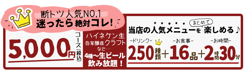 ダントツ人気NO,1コース!迷ったら絶対コレ。当店の人気メニューが全部楽しめます♪皆が楽しめる、大満足ラインナップ。